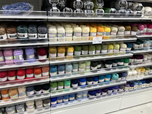 若い人はInstagramで(かぎ針が)流行っているから、芸能人がやってるから……って感じだろうか。中年は編み物教室の仲間とかかな。メモを見ながらカゴいっぱいに毛糸を買っている人もいた。