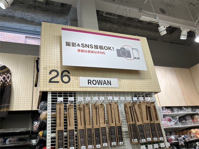 ローワンのコーナーだけ、ダークブラウンの棚が使われ、異彩を放っていた。たぶん、バーチウッドの針の色をイメージしているのだろう。針もたくさんあった。