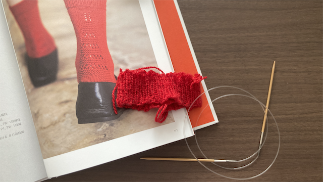 はき口から編む靴下に初めて挑戦した。