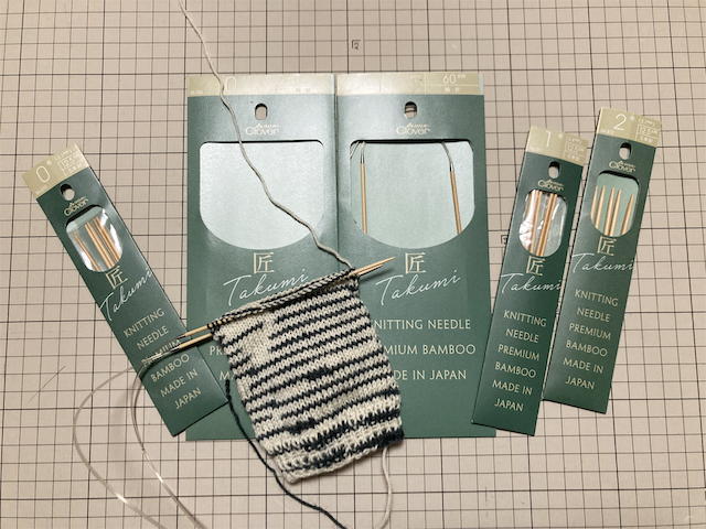 コードは40、60、80cmを使い比べ、靴下編みには60cmがベストとわかった。